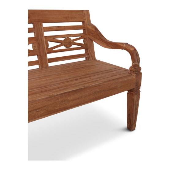 Massief teakhouten tuinbank maar dan (extra) zwaar gemaakt met dikker hout. Kan zo onbehandeld in de tuin gezet worden dan wordt hij grijs. Zet u. hem in de olie dan zal hij een warme uitstraling krijgen en houden. (kan ook door ons gedaan worden)